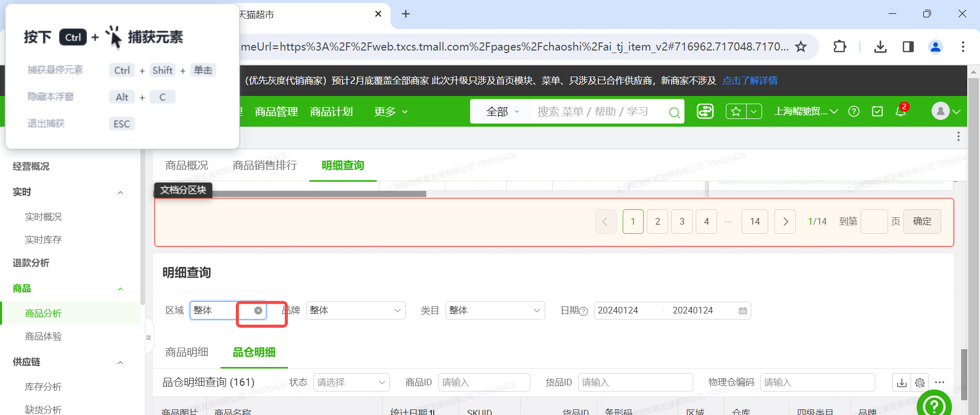 笔记本,windows系统+chrome浏览器,尝试捕捉元素时,下图中红色框位置为“鼠标停留位置”,但是显示的捕获的元素块在上方-显示为“文档分区块”的位置。开始使用捕获元素时,没有出现这种问题,鼠标停留位置 和 显示的捕获位置是一致的。