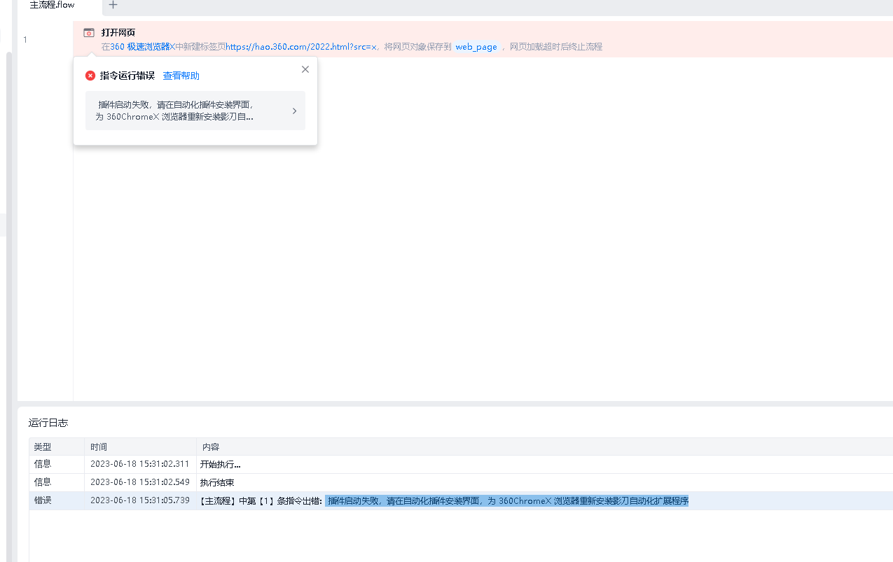 【360极速浏览器不能用了】插件启动失败,请在自动化插件安装界面,为 360ChromeX 浏览器重新安装影刀自动化扩展程序