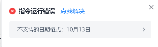 【日期时间转文本】指令报错说不支持的日期格式:10月13日是怎么回事啊