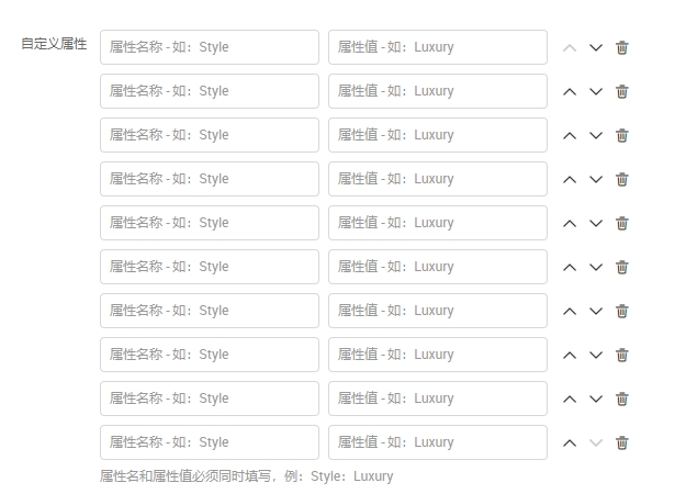 2.填写产品的属性的输入框,每个输入框里面的内容都不一样