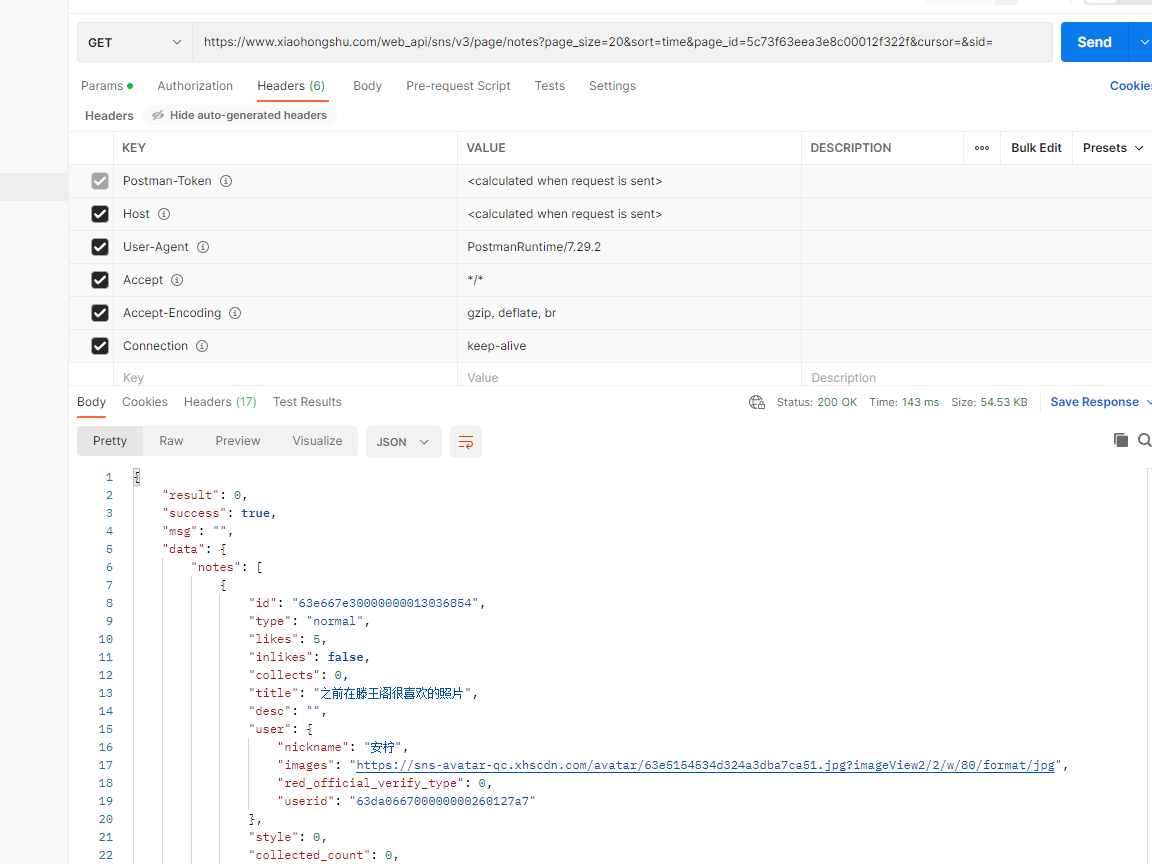 链接是这个: https://www.xiaohongshu.com/web_api/sns/v3/page/notes?page_size=20&sort=time&page_id=5c73f63eea3e8c00012f322f&cursor=&sid=