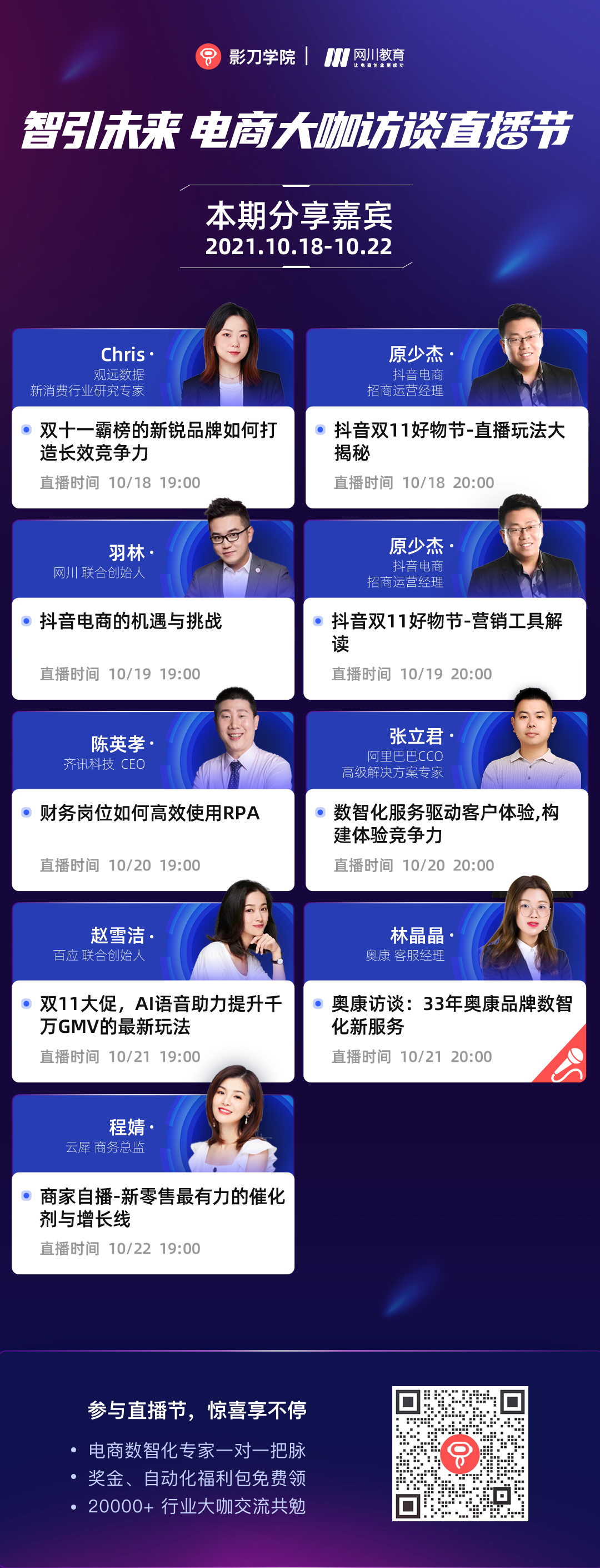 下周一开始,又是满满的9场直播排期,欢迎扫码预约报名!我们在影刀直播间等你哦!