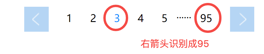 但如果当前是第三页,该翻第四页的时候,直接翻到最后页了,校验了发现右箭头识别成“95页”,