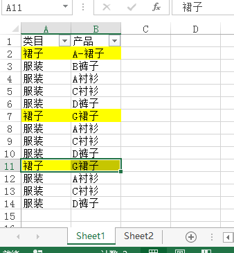 依次选取sheet2中的分类在sheet1中B列进行筛选,并把A列内容进行修改,是否可以实现
