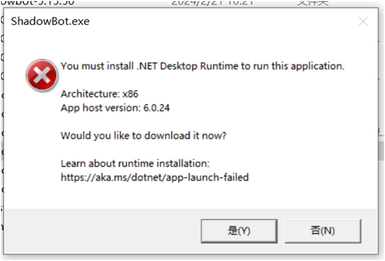 使用的过程中弹出需要安装.NET Desktop Runtime的问题
