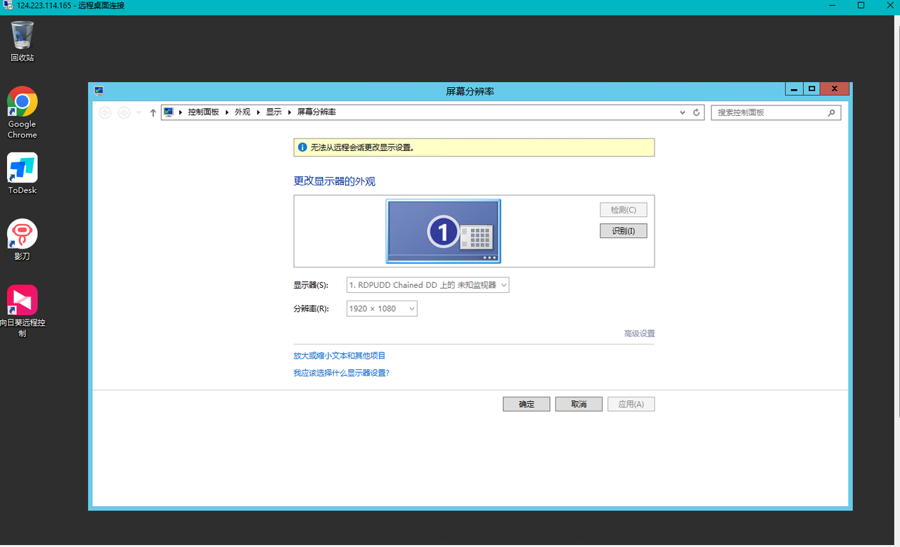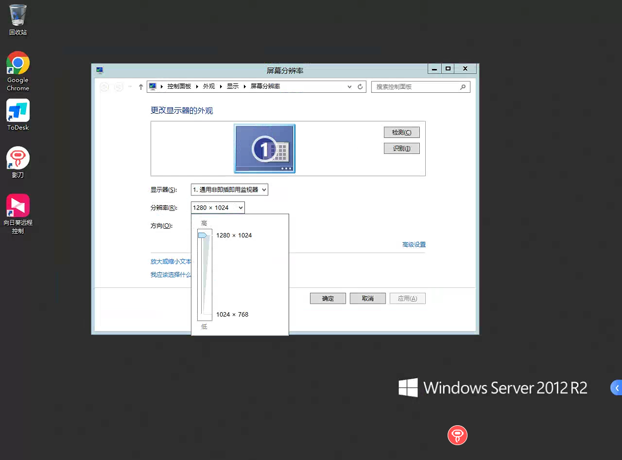 使用Todesk跟向日葵连接目标服务器以后是可以更改目标服务器的分辨率