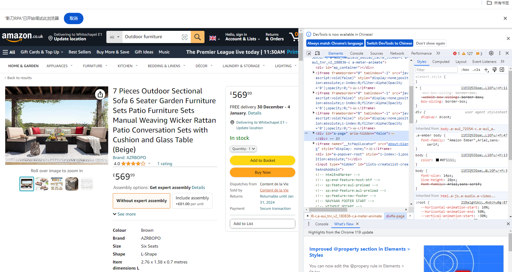 网址:www.amazon.co.uk 用关键词Outdoor furniture搜索产品 然后循环点产品跳转到产品页后点SOLD BY 的商家元素,
