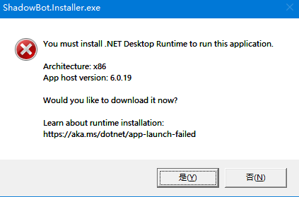按照上述链接,安装NET Desktop Runtime 版本6.019,加购X86为什么,任然无法安装影刀