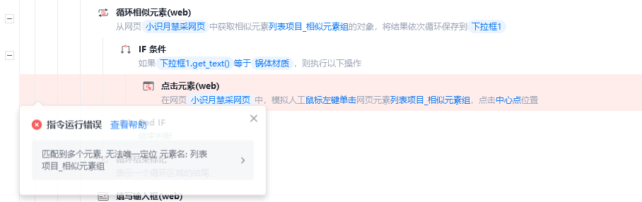 循环下拉框列表中的元素,并依次判断,点击元素内容相同的项目,但是出错了,说匹配到多个元素无法定位