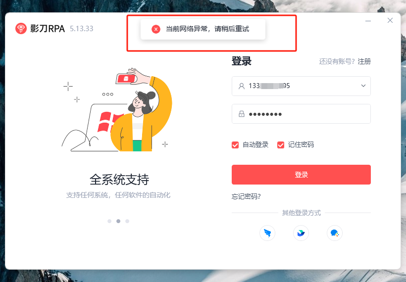 如图,登录不了,但是网页和其余软件的网络连接并无问题