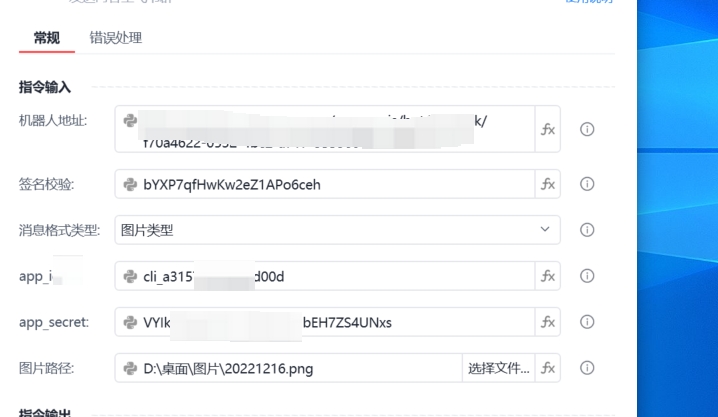 飞书群发送图片类型的时候如何设置webhook和app_id,app_secret;webhook是自定义机器人里有的,app_id,app_secret是自建应用机器人里的,完全是两个机器人,如何设置啊
