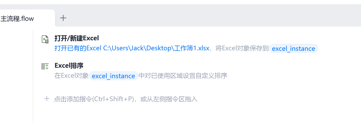 1.我刚开始以为是第一条指令问题,就将“打开/新建Excel”换成了,依然没有反应
