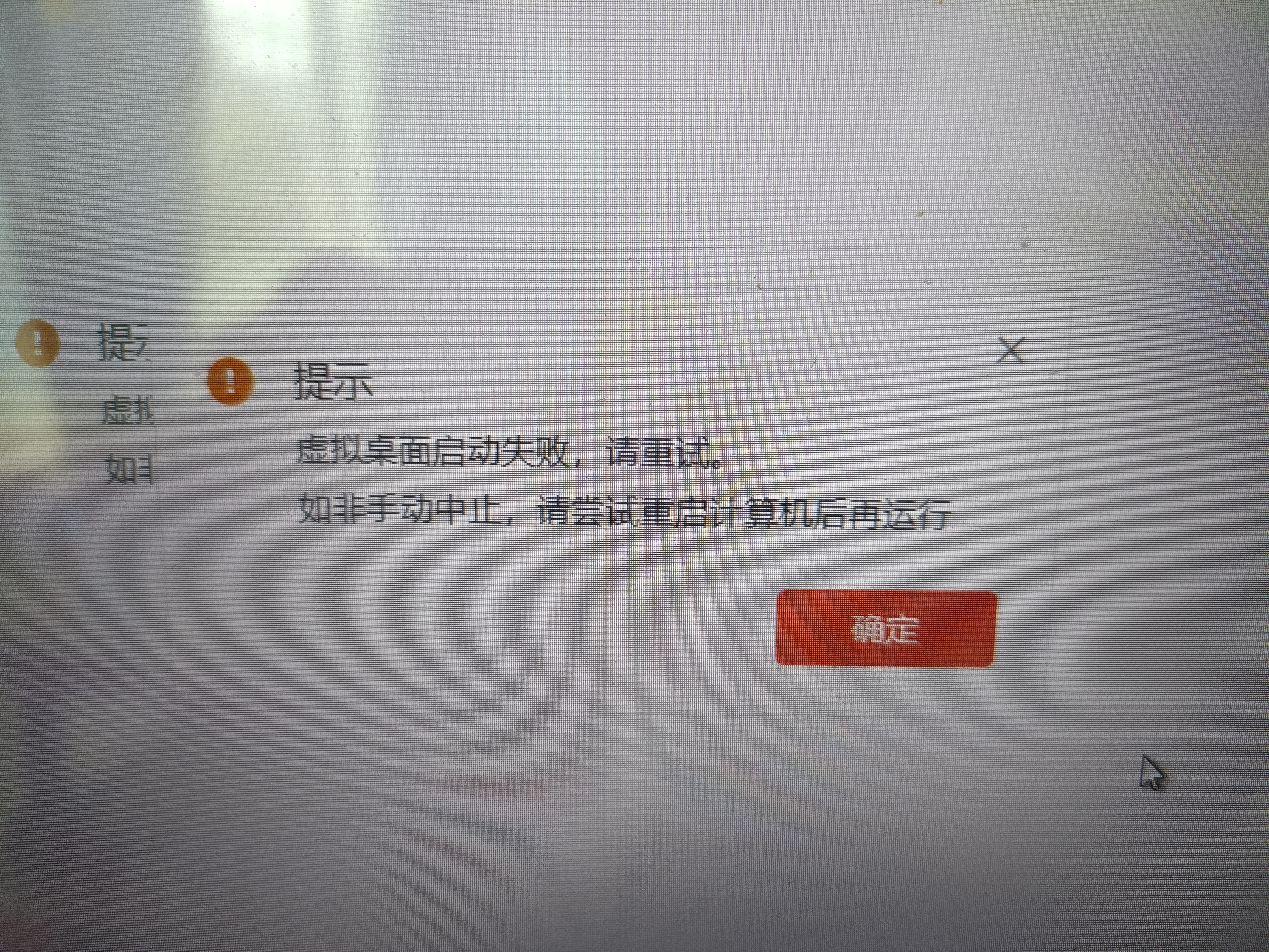 求助!!!在虚拟机中运行影刀虚拟桌面,出现这个报错提示。按照提示重启电脑,还是提示报错。