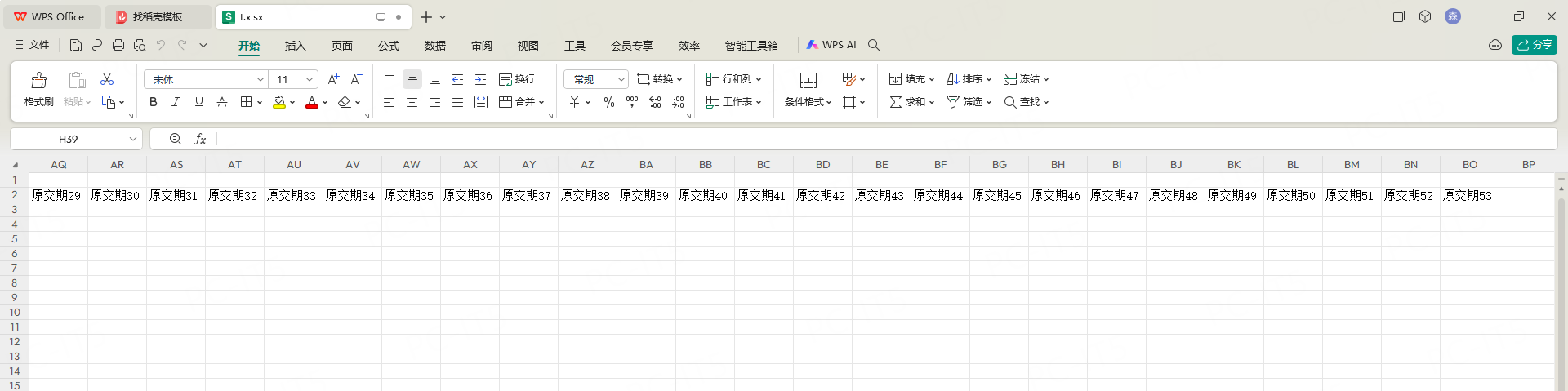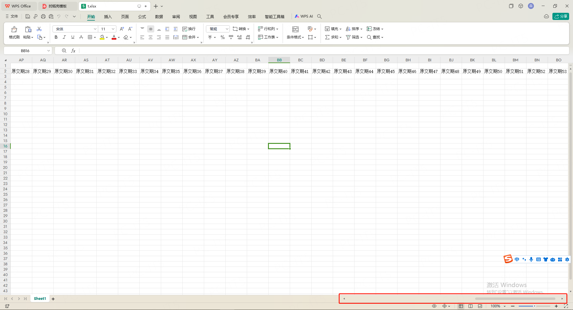 表格有a:bo列,在o列前插入一列空列,然后写入第2行o列为'原交期',运行后底下滑动条会自动滑到右边去
