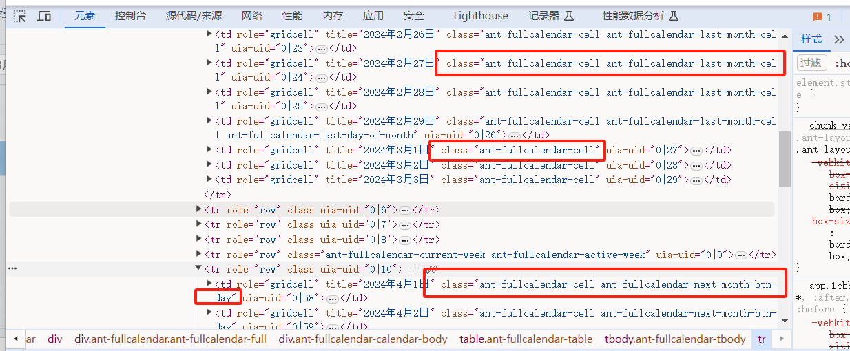 2、是可以根据元素值进行匹配。匹配的是排除 class 属性值为“ant-fullcalendar-last-month-cell” 和 “ant-fullcalendar-next-month-btn-day” 也不就成了吗?