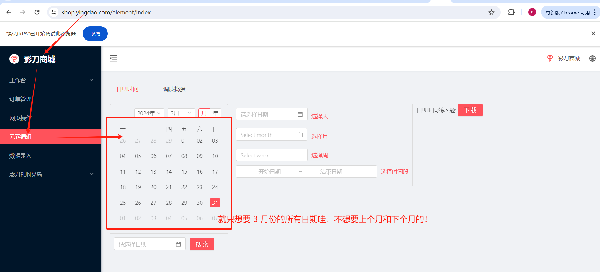 在结缘巧合下,看到了小迪老师的专题课 ---《元素捕捉》。然后关于时间编辑那块,我突然有了一个之前很久的疑问,想解开,我该怎么就能只获得当月所有日期呢?