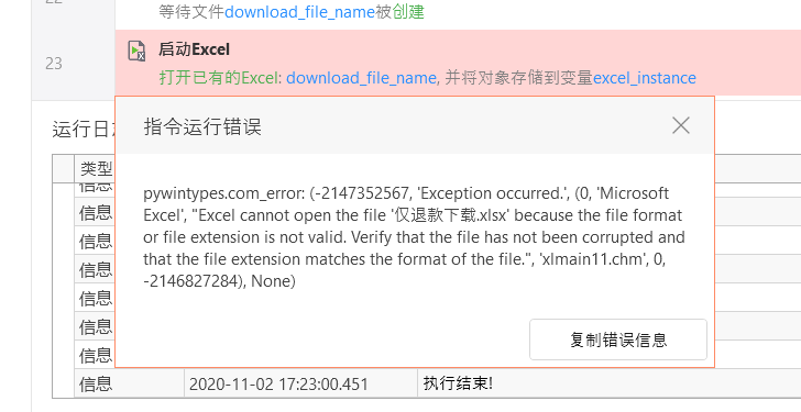 有些情形,被下载文件为03格式的excel文件,如123.xls,下载文件时,用户自定义保存文件名的过程中,将文件后缀改为07格式,如456.xlsx,此时用office或openpyxl驱动打开该Excel,会报错: