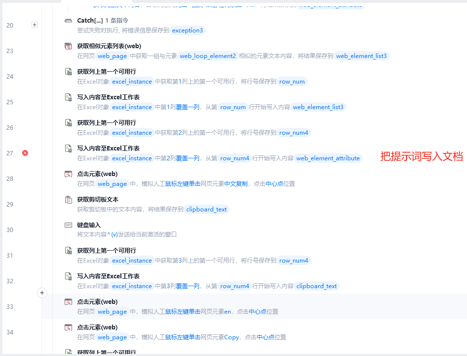 抓取的提示词写在excel其他列