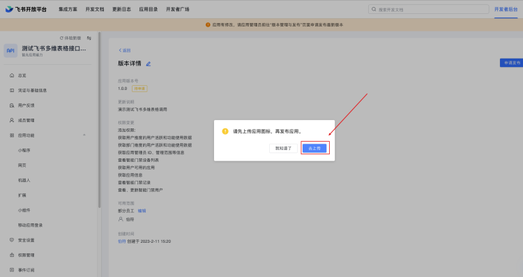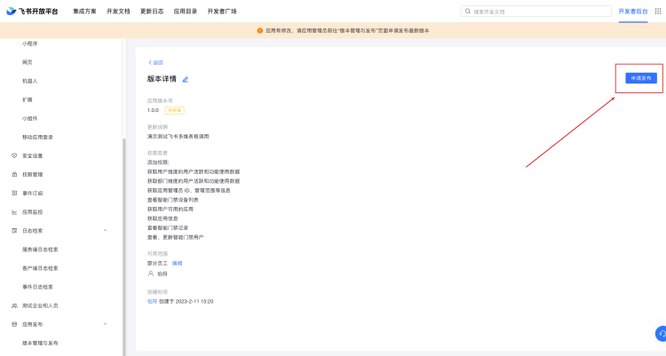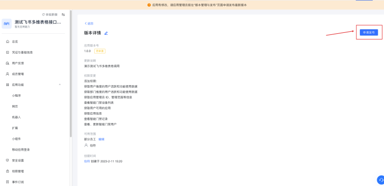 步骤和之前一样,创建版本然后发布,等待管理员同意