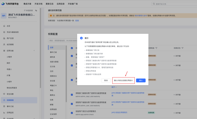 点击权限配置,需要再提交一下权限开通
