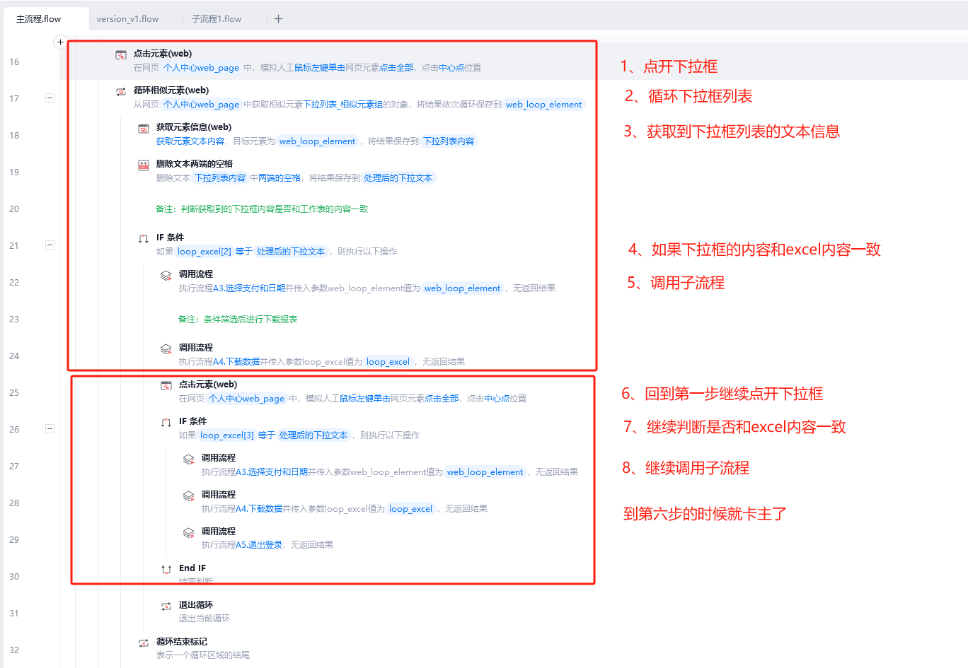 根据excel内容循环匹配下拉框内容。为什么第二轮就失效了。