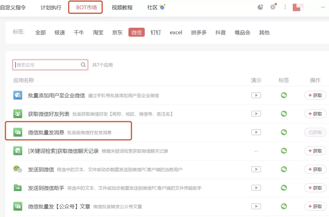 这都是一些简单的应用场景,我大概花了半天就搭建好了4个场景的应用(我有2周的学习基础),更加丰富的通用应用(我喜欢叫做软件工具)可以在影刀的BOT市场获取。