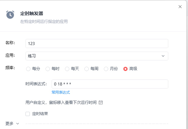关于触发器高级设置的时间表达式