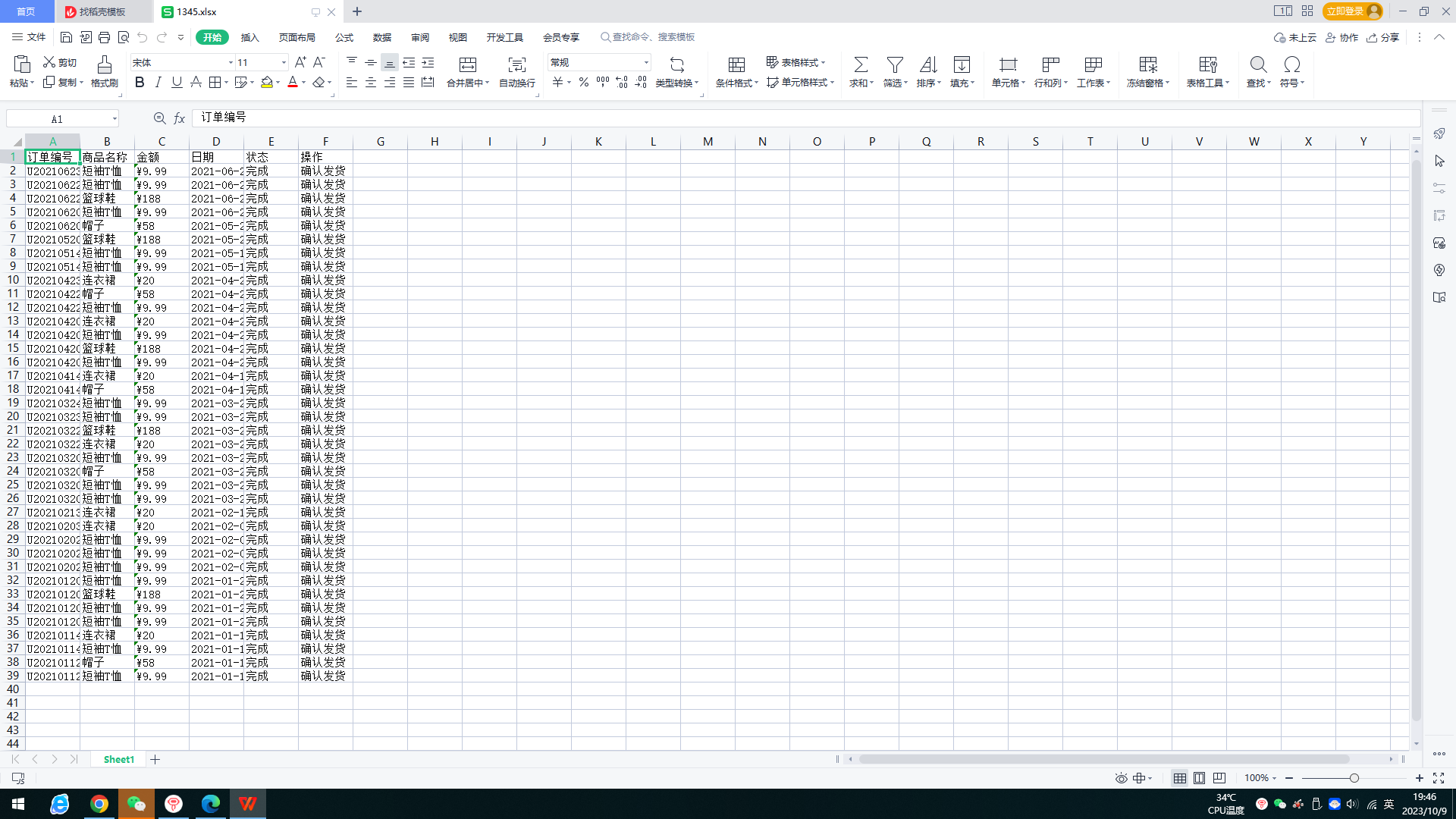 初始表格