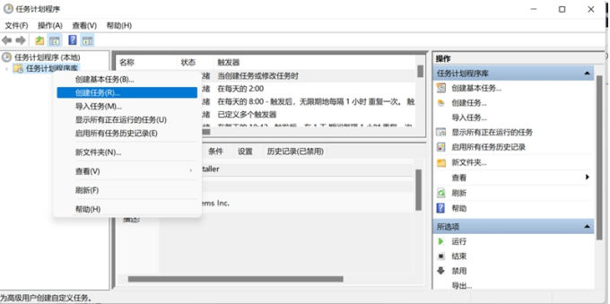 右键【任务计划程序】,然后在里面选择【创建任务】