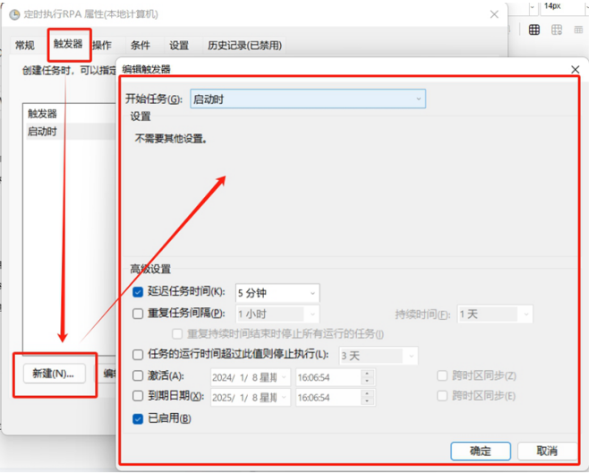 【开始任务】:此处有多种类型,此处选择类型为“启动时”