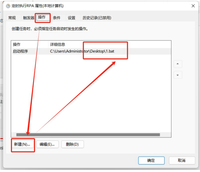 进入操作界面,选择【新建】然后输入选择在第一步里面桌面创建的1.bat文件;(或其它命名的文件)