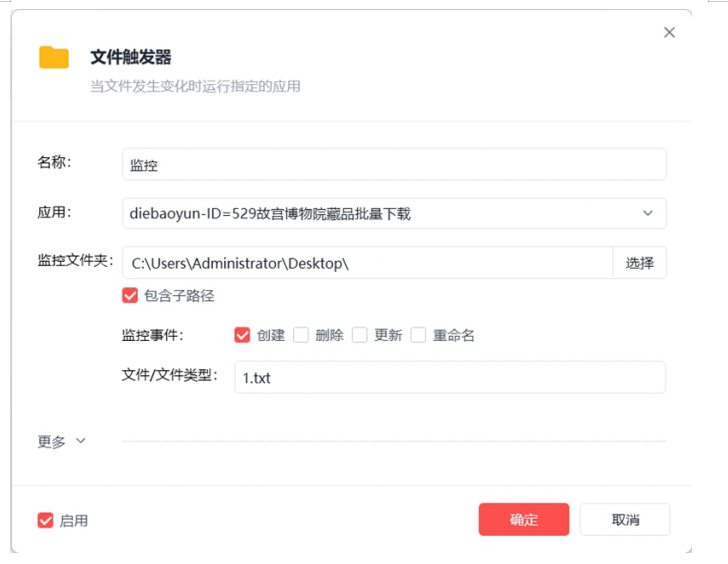 【文件/文件类型】:是指在监控文件夹目录下需要被监控的文件是什么,此处举例以:1.txt