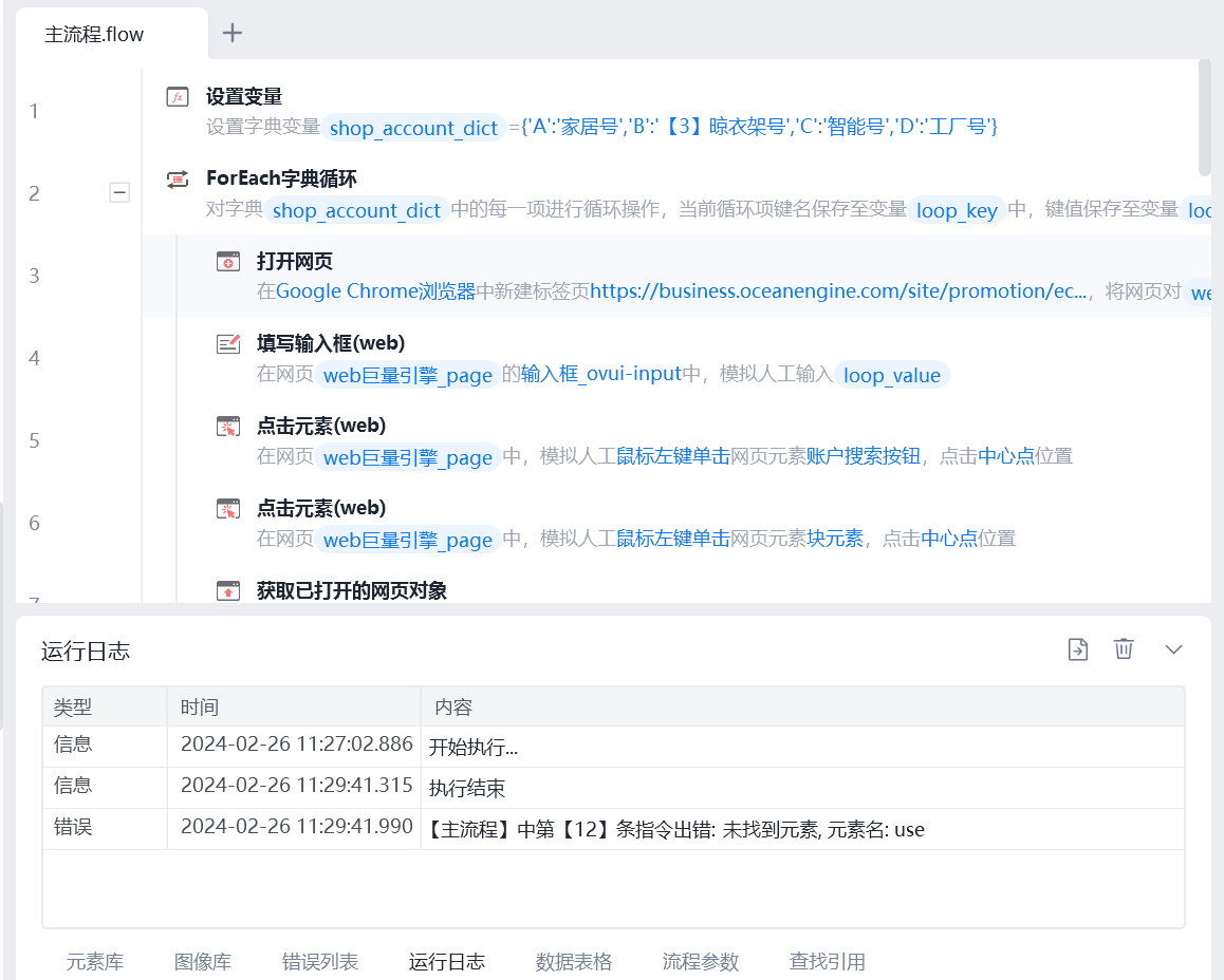 需要对一个网页做重复的操作,设置了字典循环来重复运行,第一次运行是没有问题的,但是第二次切换了用户后,同样的网页元素显示错误:未找到元素,应该怎么解决