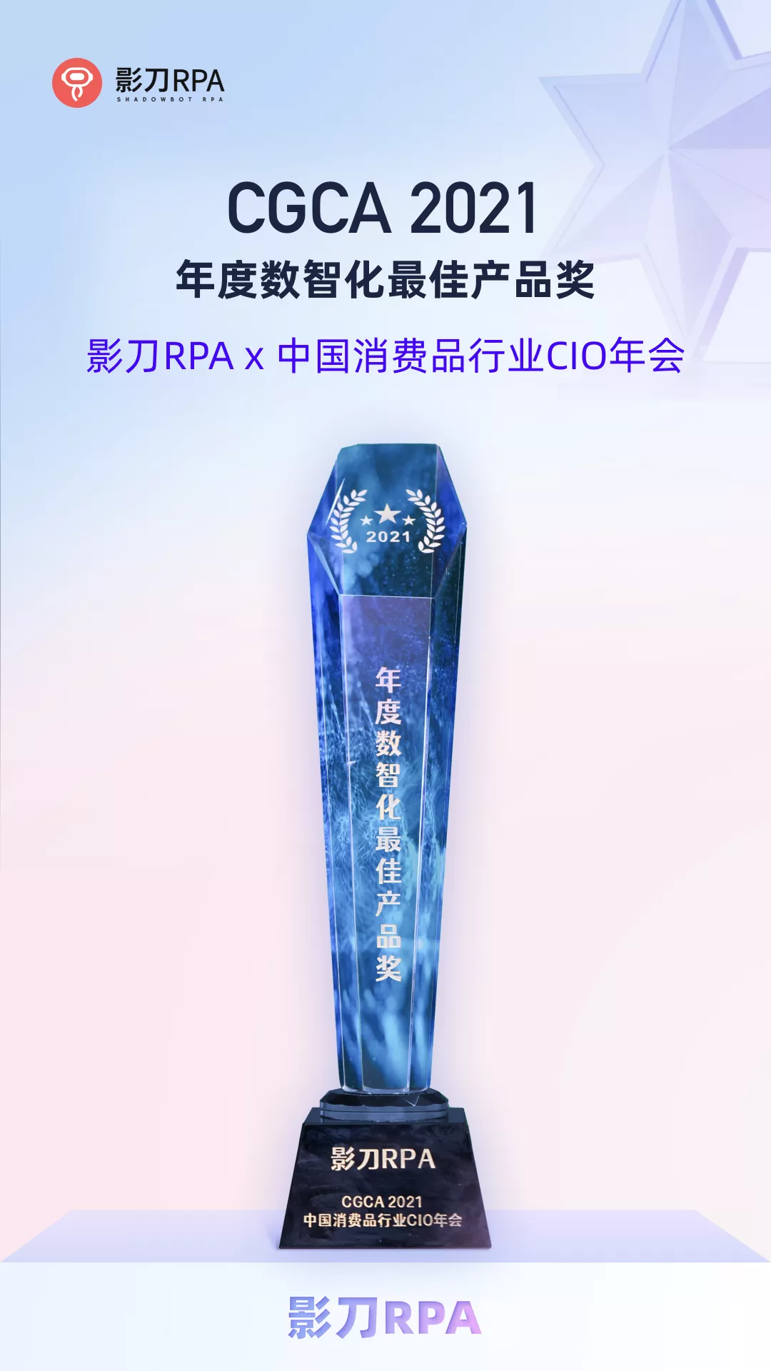 ▲ 影刀RPA获评价「年度数智化最佳产品」