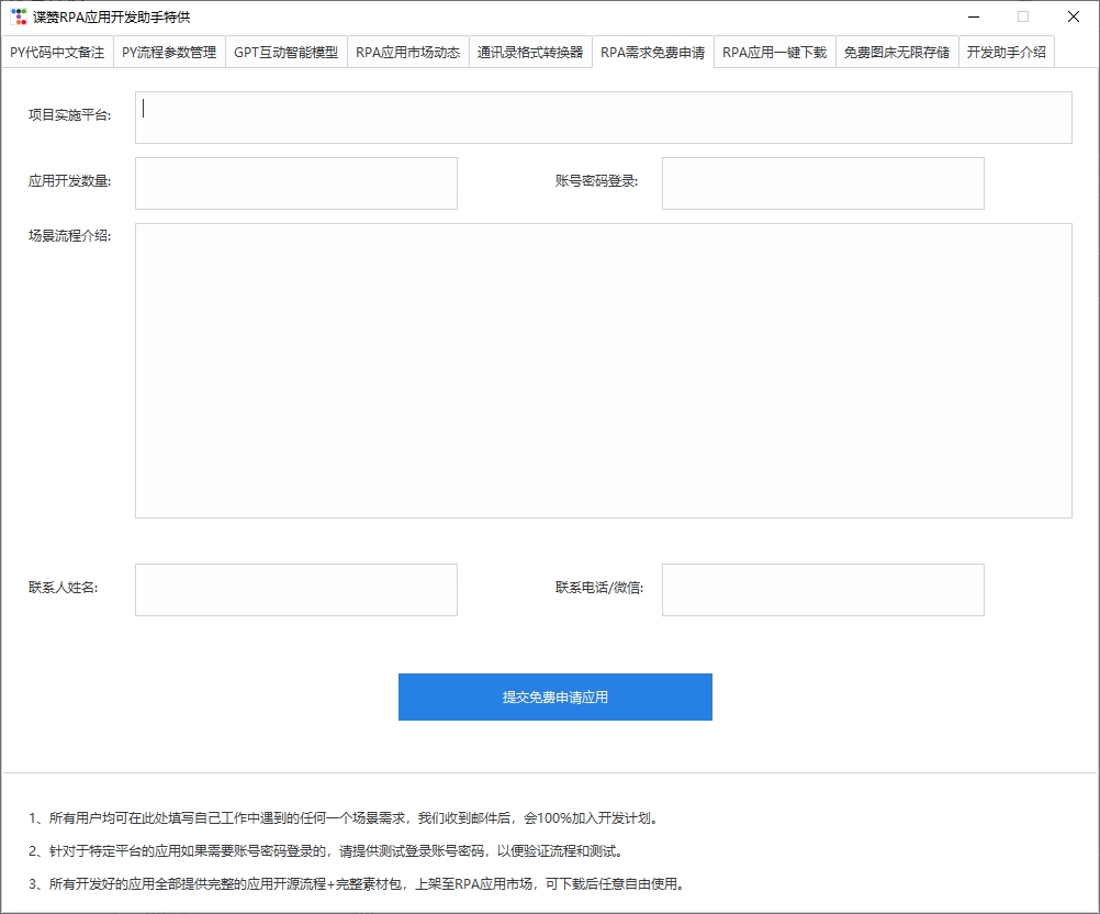 当自己有什么应用开发需求的时候,可以通过此处提交应用开发需求,然后我们收到需求后,可以给予免费开发;
