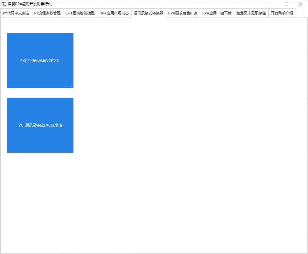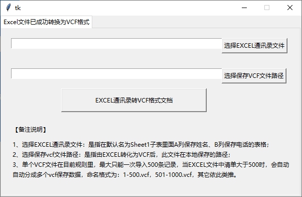 这个模块里面共分离两个单元,其一、将EXCEL通讯录电子表批量转成手机标准格式的VCF格式文件,