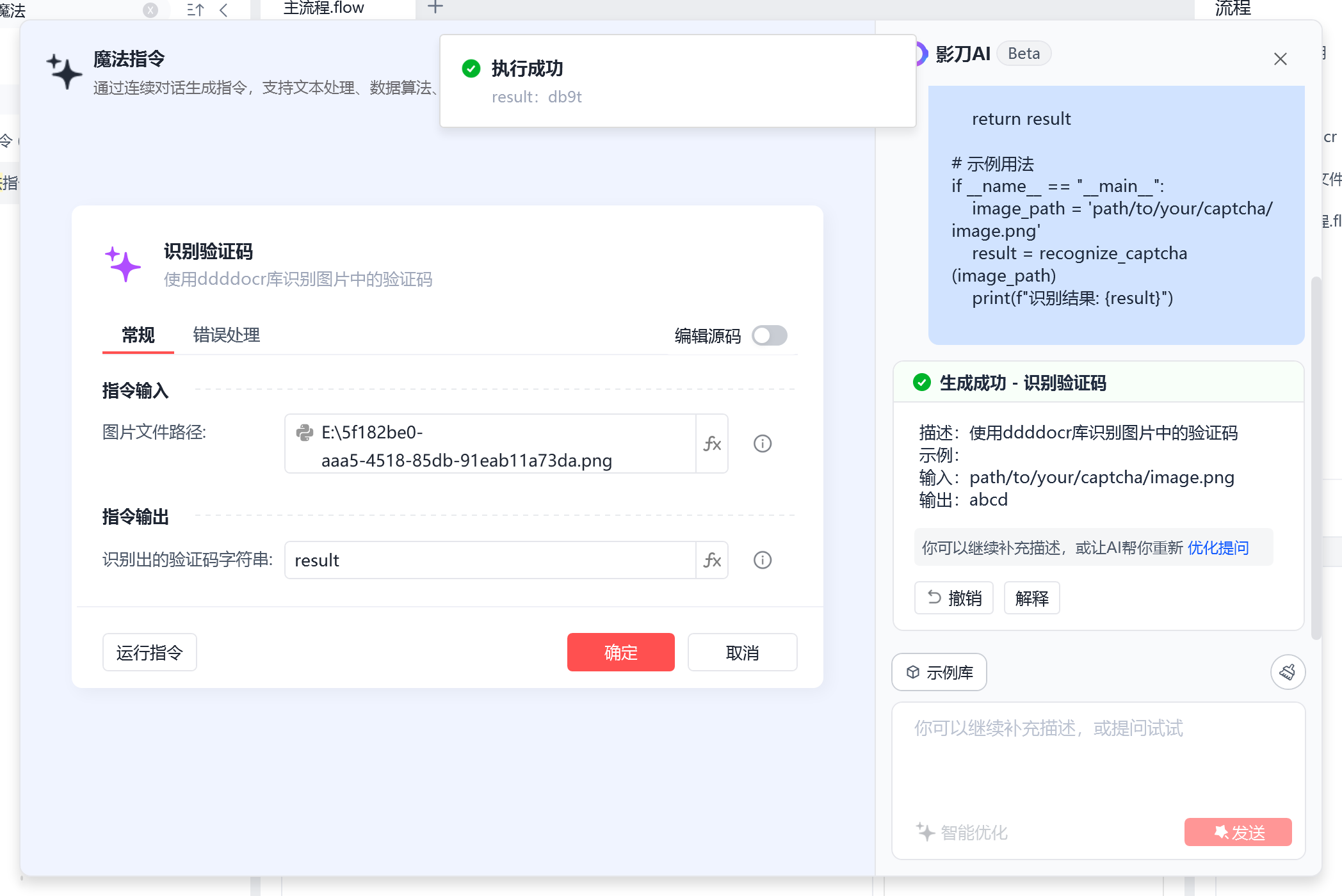 生成的魔法指令测试结果: