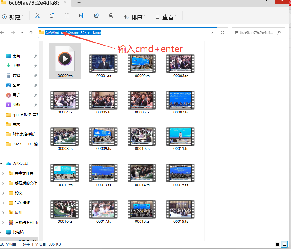 在弹窗中输入copy /b *.ts demo.mp4+enter