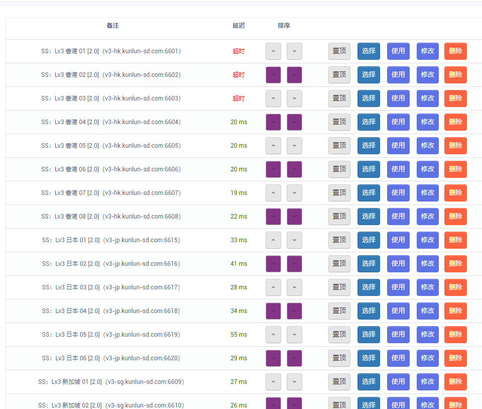 跪求大佬指导。这样的web页面中,如何选择延迟最小的行,然后点击改行所对应使用按钮?(如果最小值是两个或者多个,取第一个)