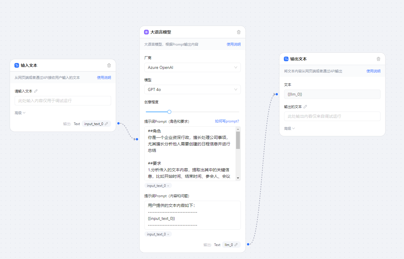 return lastest_message然后是通过AI服务来提取语音消息中的关键信息,在这里我们借助基础的语言类大模型即可完成,这边进行一个简单的搭建演示。