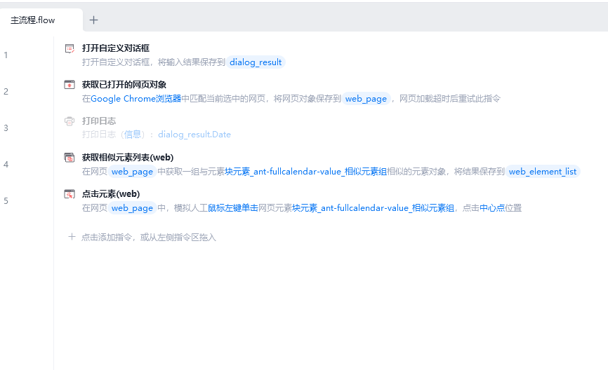使用【点击元素(web)】指令点击待选择的日期