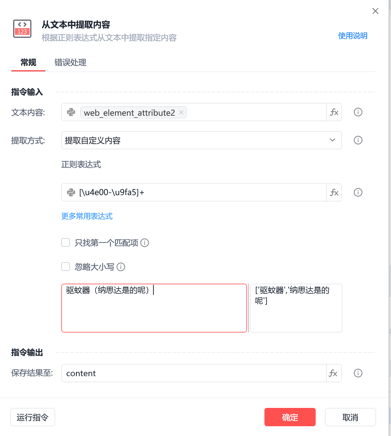我尝试了好几个办法,可能是我才接触到RPA,属于小白,但是我实在是不知道怎么把这里的文字变成一整段话,只提取其中所有的文字,不要其他的信息,字母,数字,符号这些全部不要,有人能帮下孩子么?实在是太难受了。