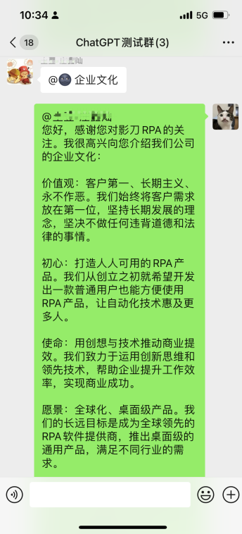我这里上传了公司简介相关word文档,希望机器人扮演公司前台。优先从知识库寻找问题答案。