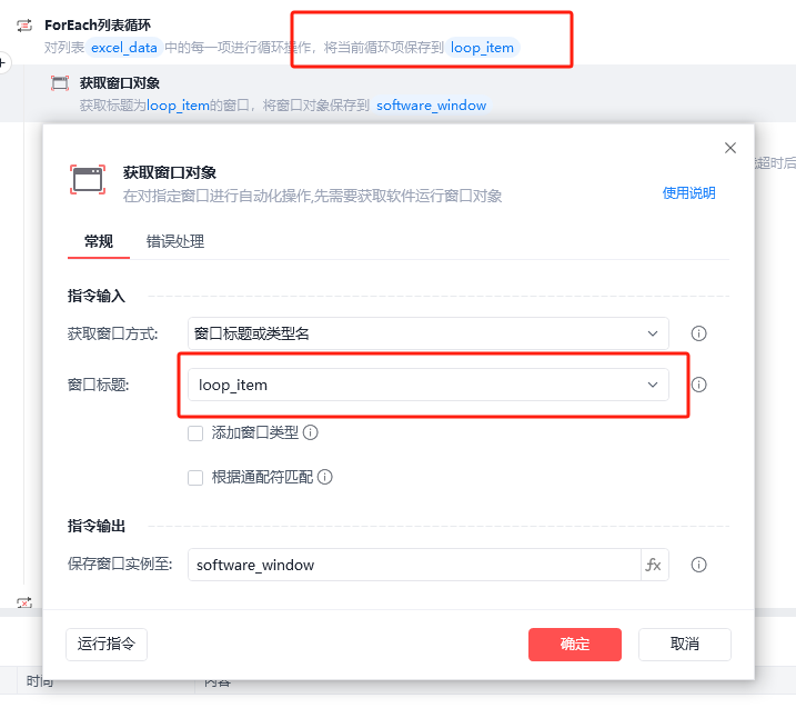 我是根据对应的窗口标题作为列表进行遍历,但是循环参数好像不能填loop_item
