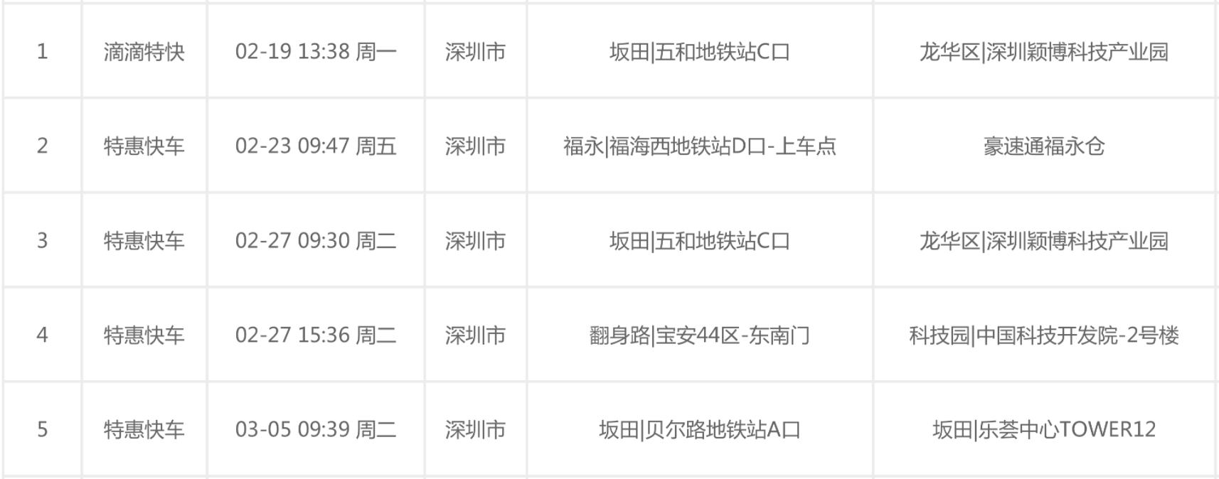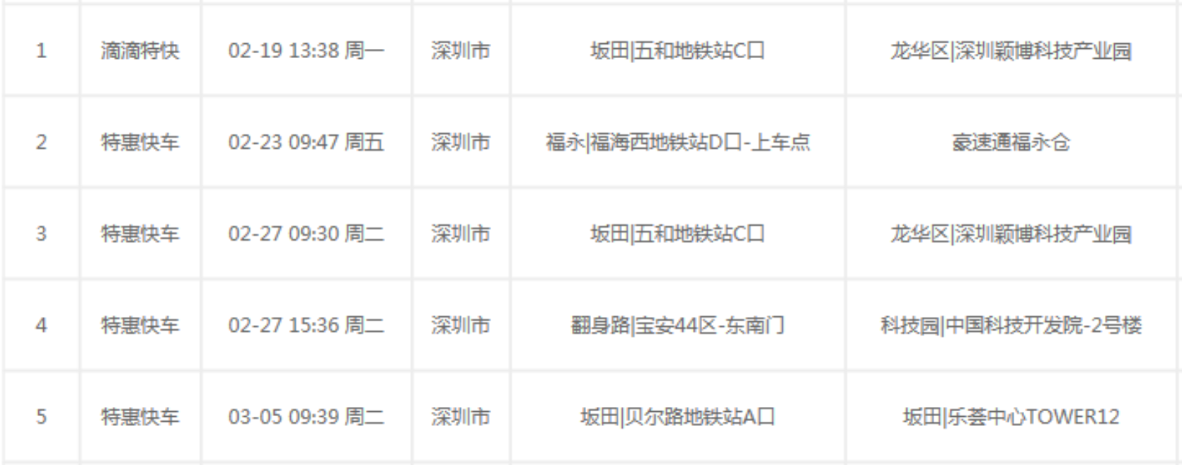 在这里我用滴滴的行程单做一个比对: