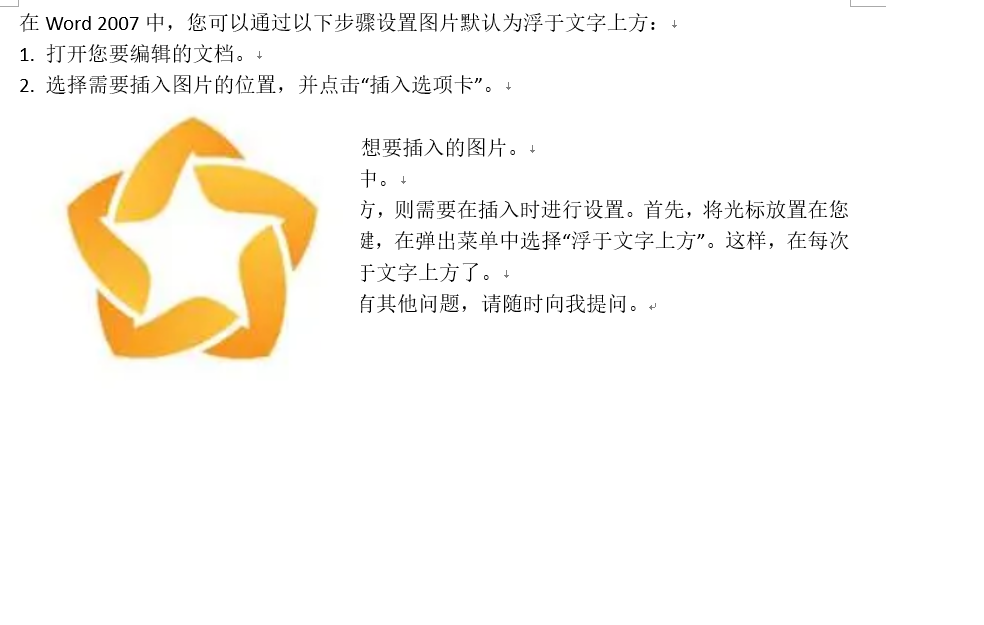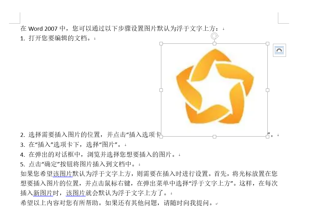 我设置了word的默认设置,手动插入图片时,会自动浮于文字上方,但是用影刀插入时还是嵌入模式。