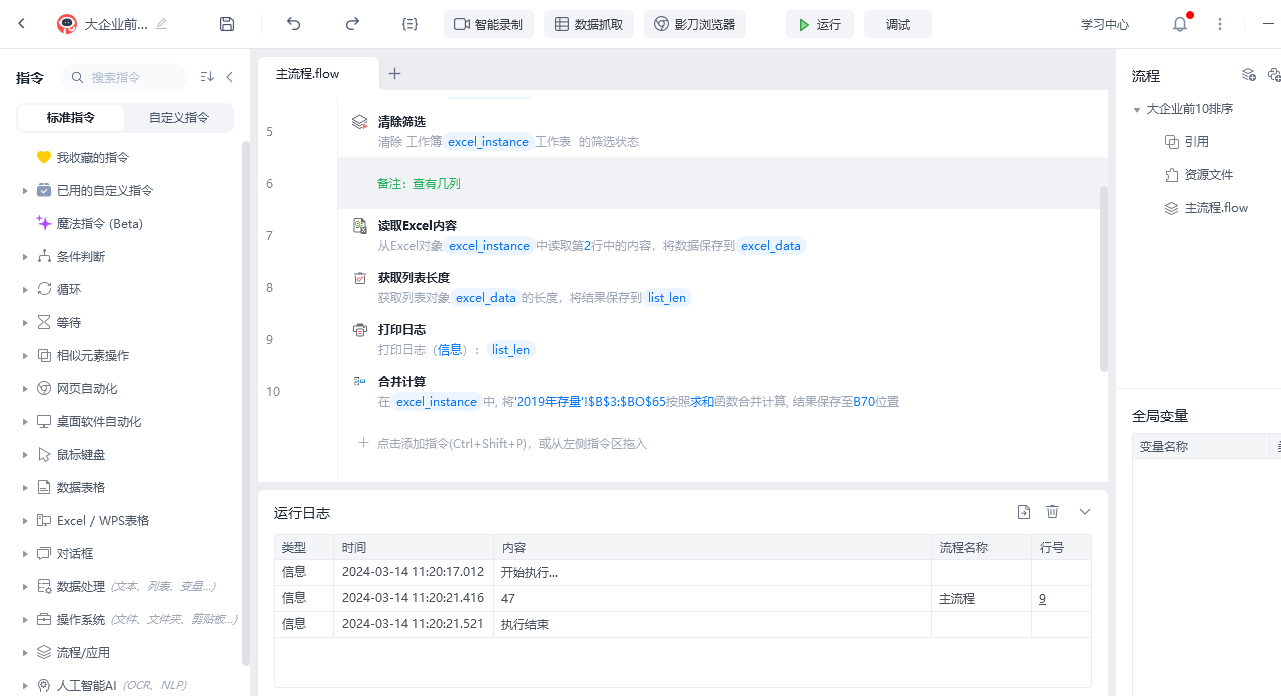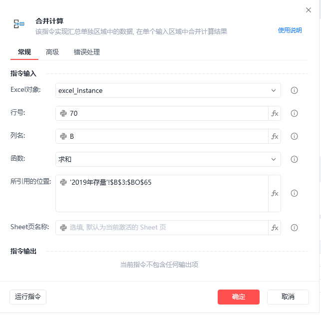 影刀程序最后一行是使用合并计算,没有任何报错,但是算完在excel中没留下任何痕迹和结果。