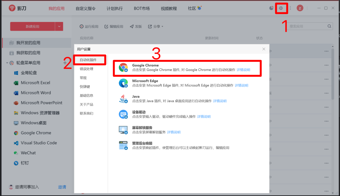 △打开【开发者模式】与【影刀插件】