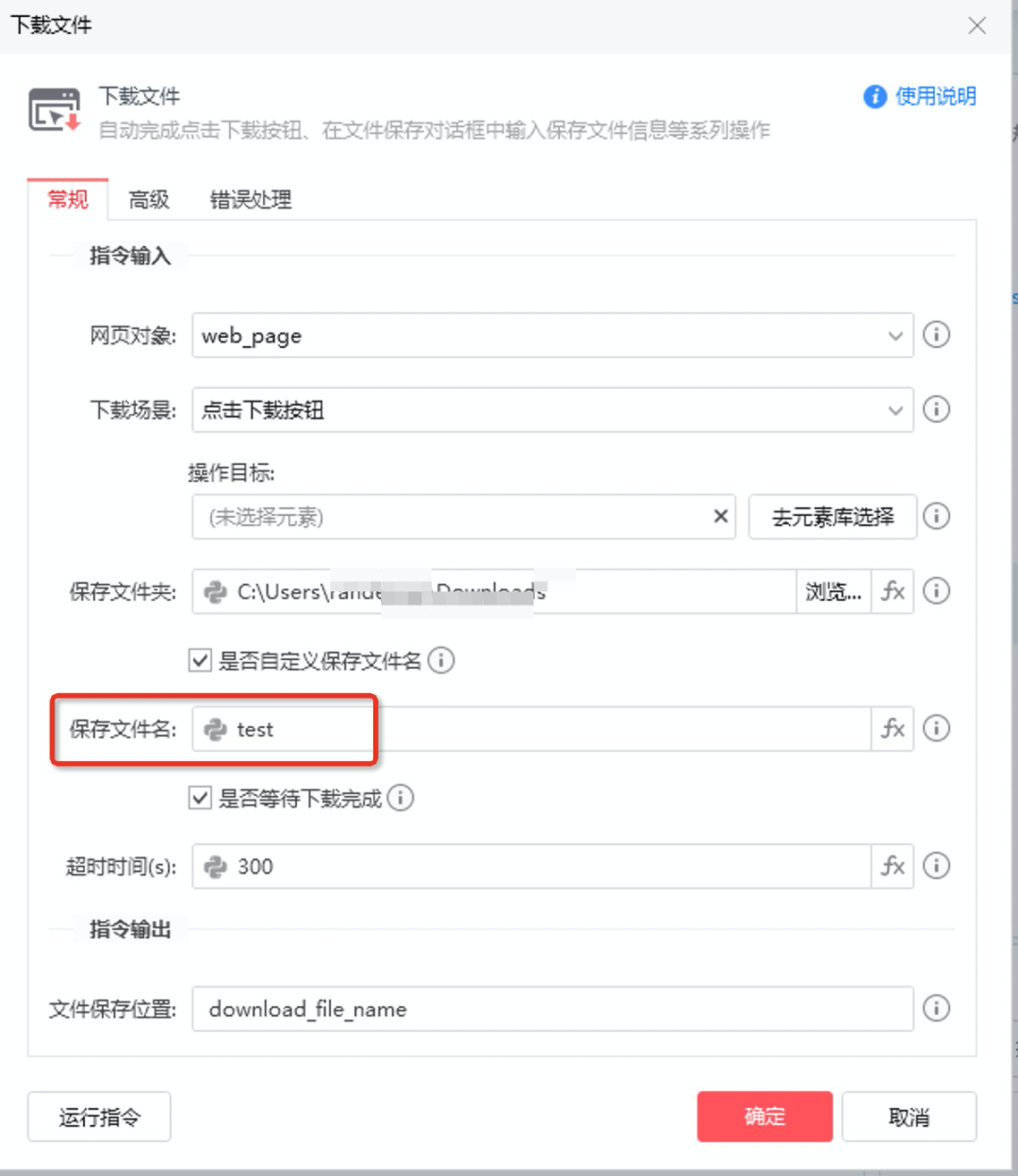 ⑤ 检查下载路径是否正确(“下载/上传文件”/“处理下载/上传对话框”指令)