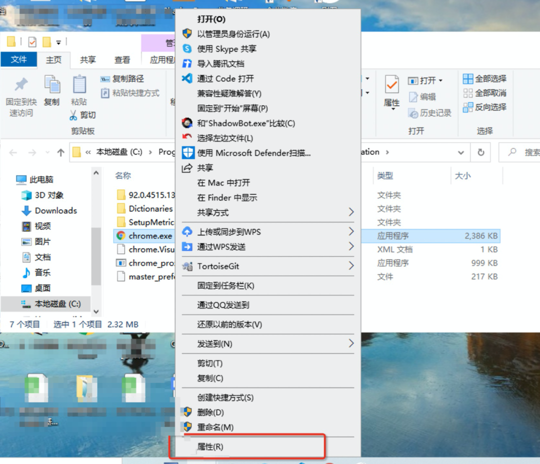 Step2:右键文件中【chrome.exe】,点击属性
